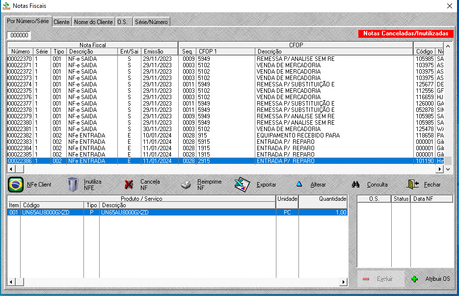 - Emissão de nota fiscal a partir do número da OS